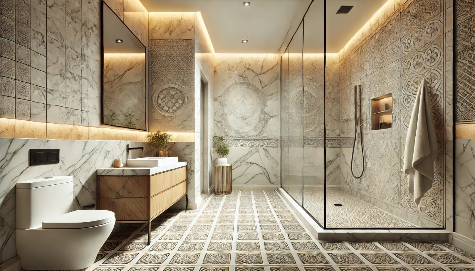 Boden- und Wandfliesen: Wir verlegen Fliesen in verschiedenen Formaten und Materialien, sei es in Wohnräumen, Bädern, Küchen oder Außenbereichen.